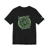 A unisex jersey short sleeve tee featuring a unique design by Jericho Garcia inspired by Pike Lane Gardens, perfect for gardeners, nature lovers and those who aspire to be gardeners. The shirt exudes a Woodstock vibe, making it ideal for a casual, free-spirited look. This tee is suitable for active wear or leisure wear, providing breathability and comfort for all-day wear.