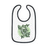 Introduce your new born child to the wonders of organic vegetable gardening with this baby bib. The bib is made from 100% combed and ringspun cotton, ensuring a strong and smooth fabric perfect for printing. It features a reinforced durable Velcro closure and self-fabric binding in a contrasting color.